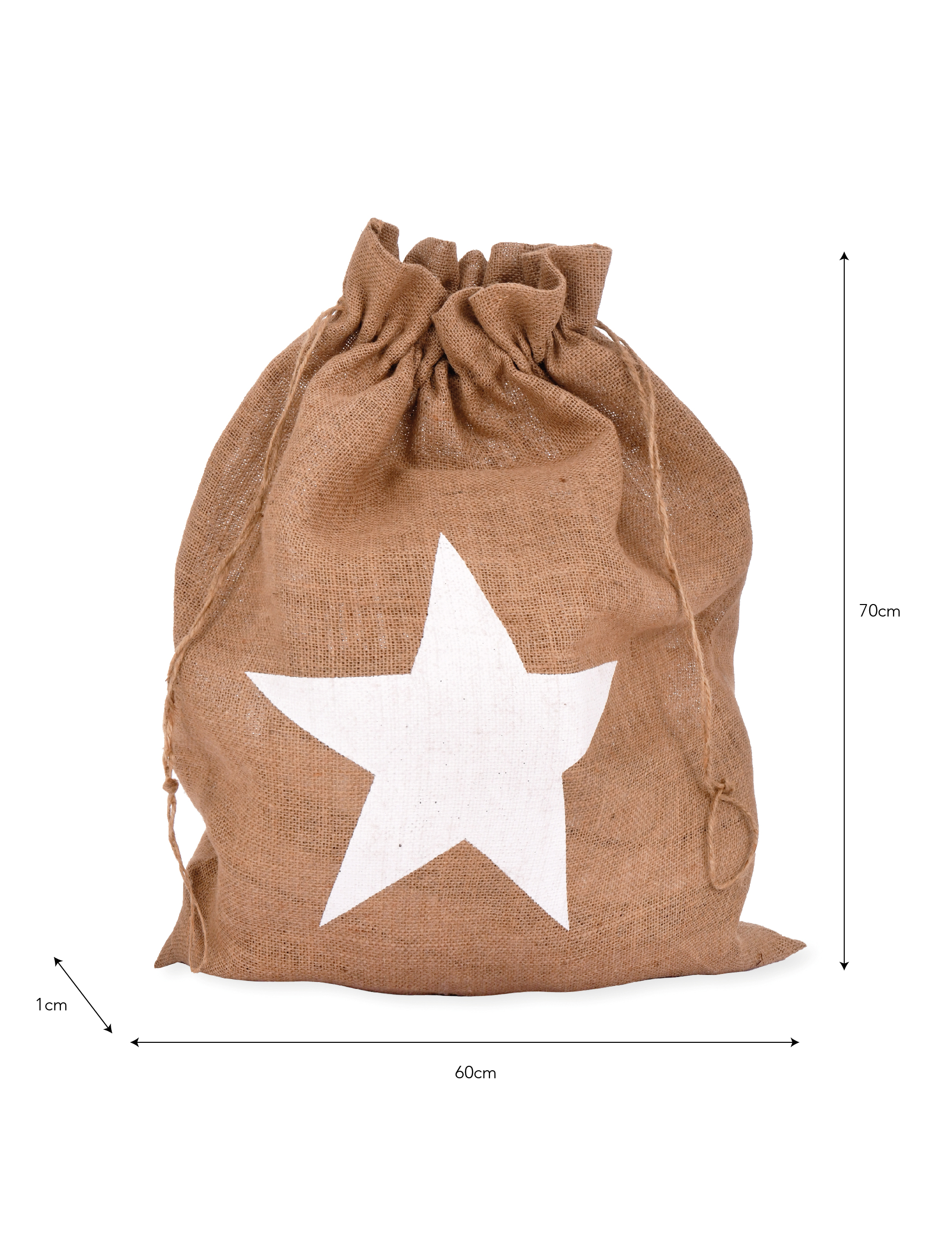 No Christmas morning is complete without a sack full of surprises (for those on the nice list, at least). Choose between our Snowflake or Star print festive jute sacks, each finished with a drawstring top to keep the magic under wraps until the big day.