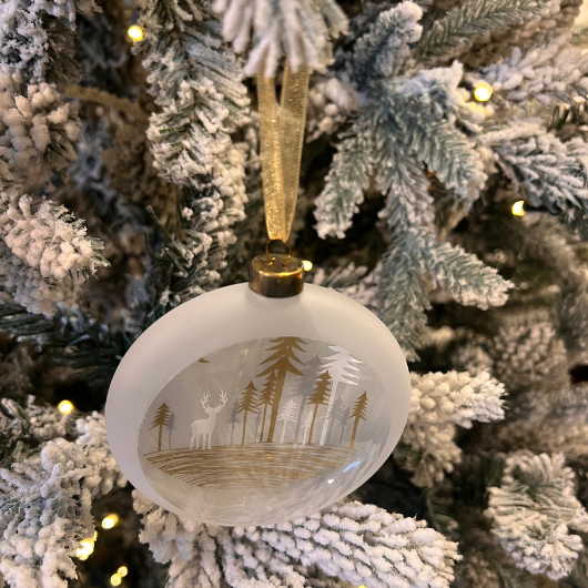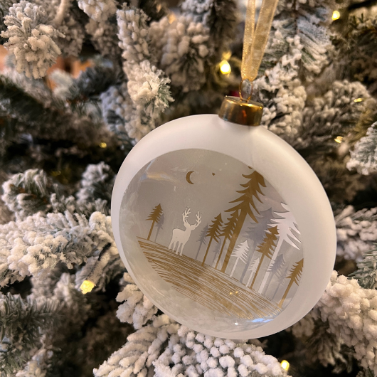 Christmas Frosted Glass Bauble Deer by Rader Design. Simple stylish design at its best glazed on the inside and part glazed/unglazed on the exterior to add interest and texture.