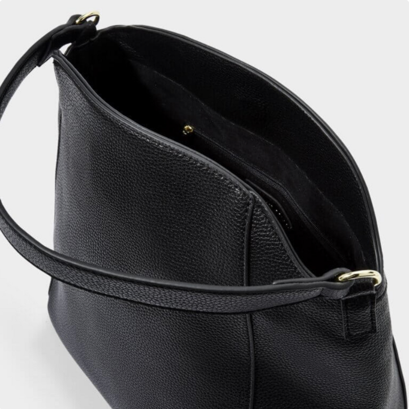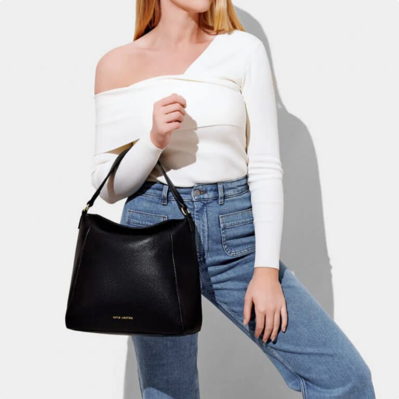 Meet your new everyday favourite — the Katie Loxton Heidi Shoulder Bag in Black. Designed with a sleek, modern silhouette, this standout handbag blends style and practicality effortlessly. Its fold-over flap and secure magnetic fastening keep your belongings safe, while the padded top handle ensures comfortable wear throughout the day.