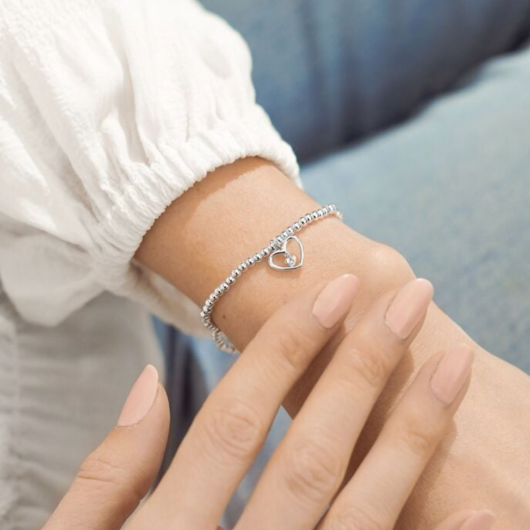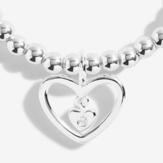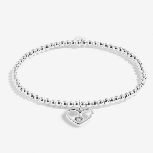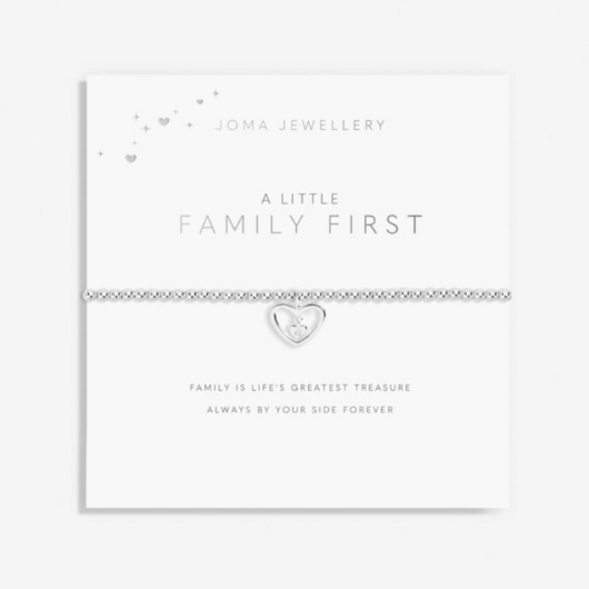 Celebrate the people who matter most with Joma Jewellery’s A Little ‘Family First’ Bracelet. Threaded with polished silver-plated beads in the signature stretch design, this meaningful bracelet features a heart-shaped charm encasing a smaller sparkling heart, symbolising the closeness and love of family. Wrapped around a stylised sentiment card with the meaningful message “Family is life’s greatest treasure always by your side forever”, it is the perfect way to remind every family member how much they are cherished.