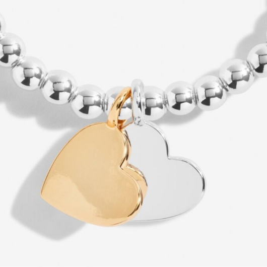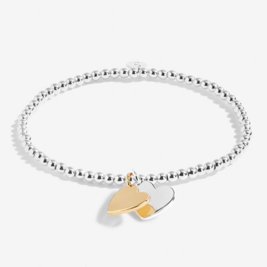 Design: Stretch bracelet with double heart charms (silver and gold)