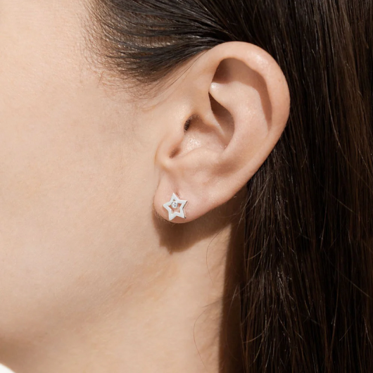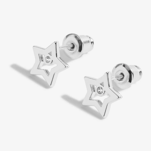 These stunning silver-plated stud earrings feature star-shaped charms embellished with cubic zirconia stones, representing love, strength, and connection. With sterling silver pins and dainty butterfly backs, they combine comfort with timeless shine.
