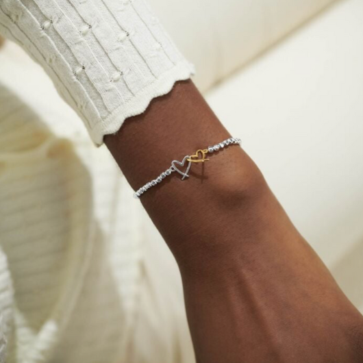 The Forever Yours ‘Lots Of Love’ Bracelet is designed to be treasured for a lifetime. Featuring a silver-plated hammered bead design and a beautifully interlocked heart charm in mixed silver and gold plating, it makes a timeless and meaningful gift. Presented on a soft blush-pink card stamped with the sentiment “Lots Of Love” and paired with a sweet poem, this bracelet is perfect for celebrating milestones, special moments or simply showing someone how much you care.