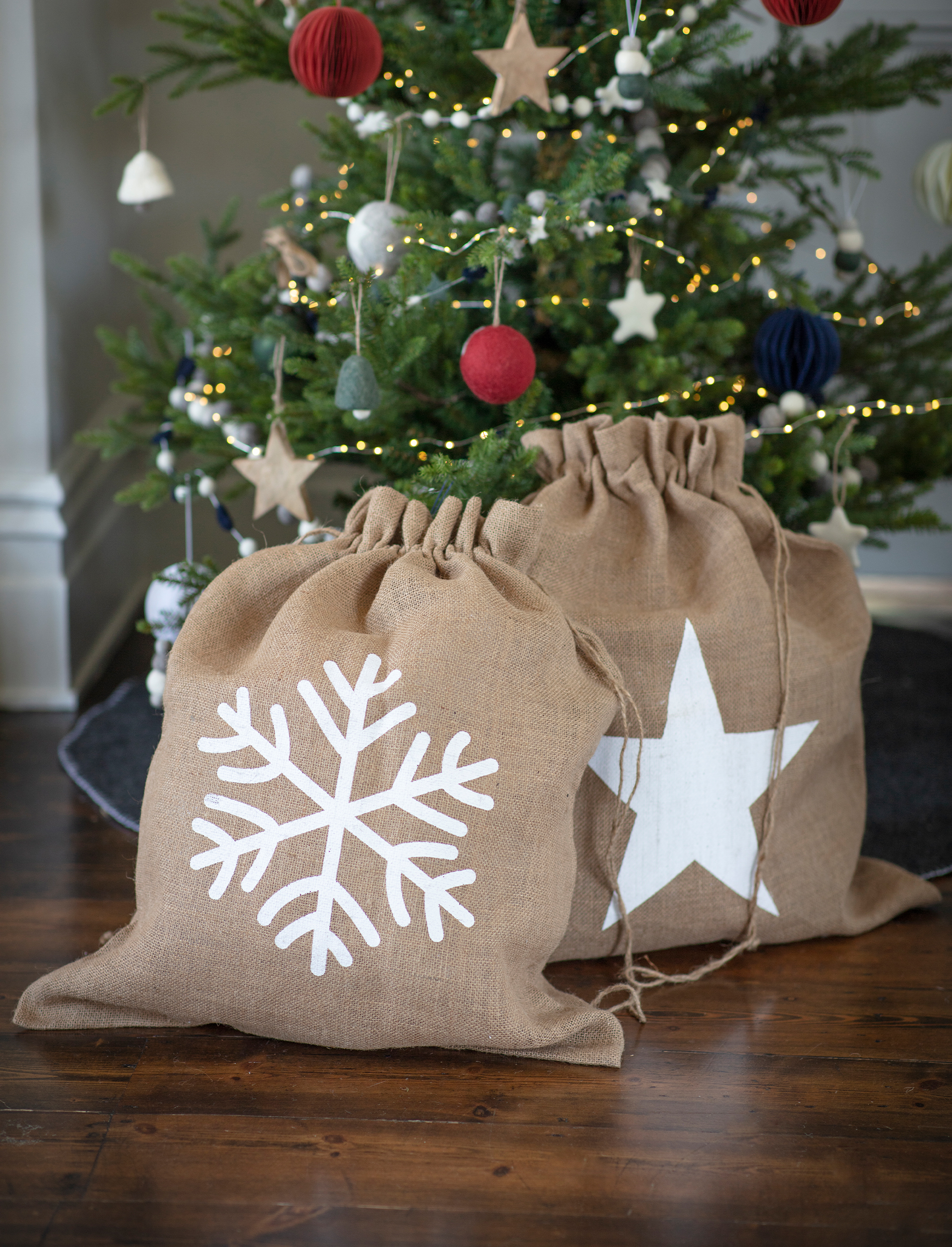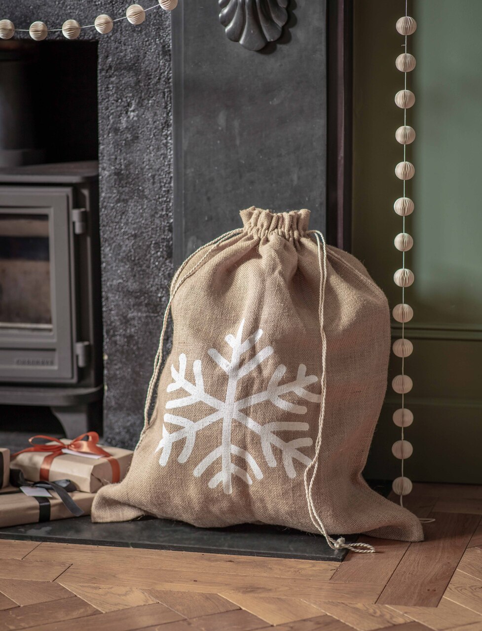 No Christmas morning is complete without a sack full of surprises (for those on the nice list, at least). Choose between our Snowflake or Star print festive jute sacks, each finished with a drawstring top to keep the magic under wraps until the big day.