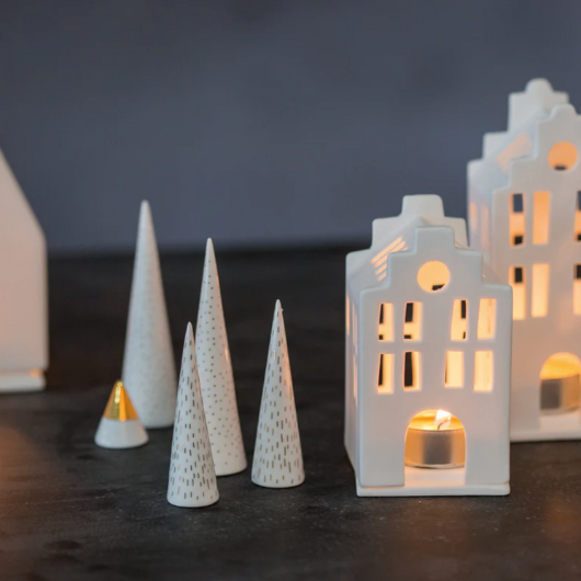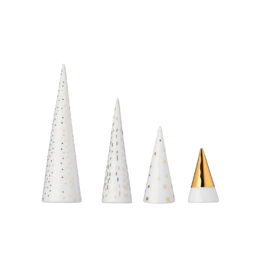 Räder Porcelain Tree Cone Decorations – White with Gold Detail