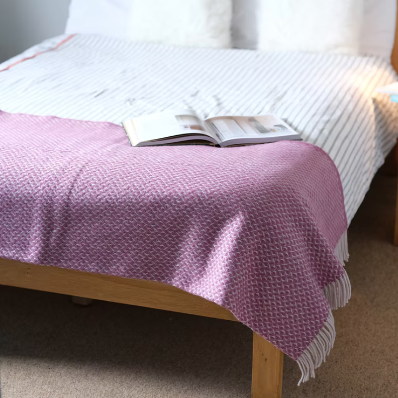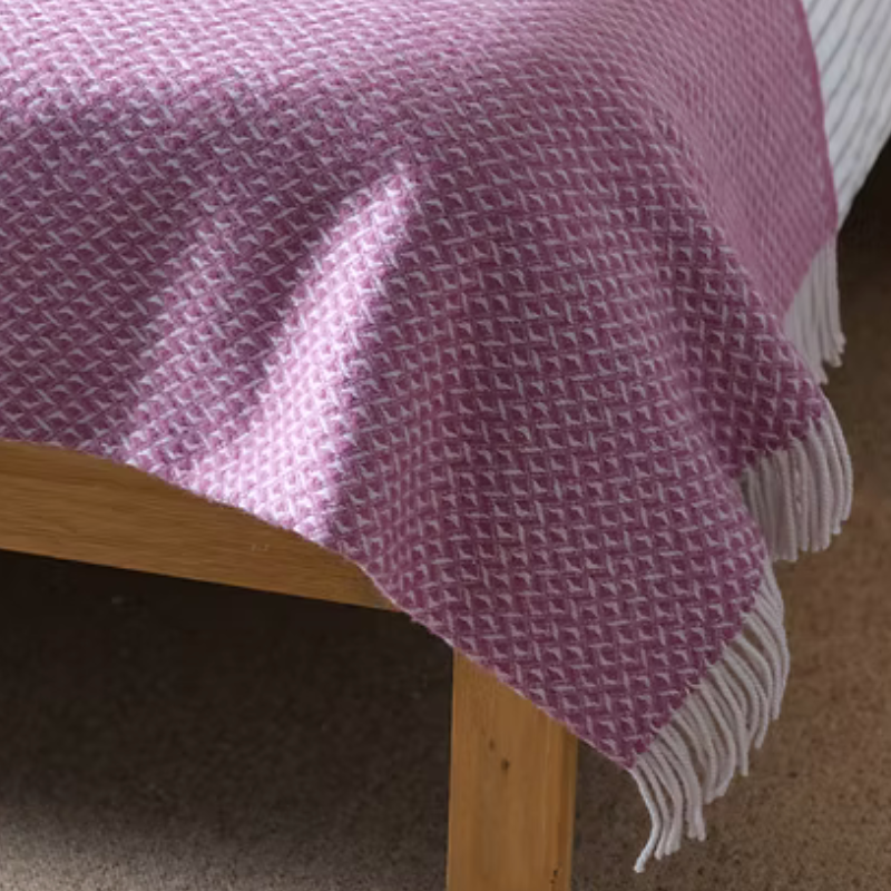Add richness, warmth and texture to your home with the Mulberry Diamond Blanket Throw by Sand Cornwall. Woven from 100% new wool, this elegant throw features an intricate two-toned diamond weave in a beautiful mulberry palette, offering a luxuriously textured soft-touch and stunning depth of colour. Its fine weave and natural insulating properties make it perfect for year-round use — from cool summer evenings to cosy winter nights. Ideal for draping over a sofa, styling at the end of a bed or wrapping up on chilly evenings, it is finished with classic twisted tassels for a timeless, refined look.