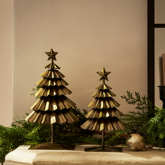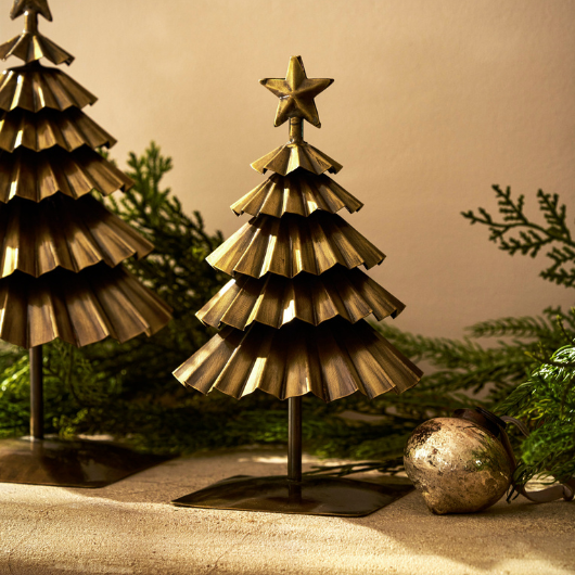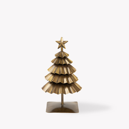 Beautifully finished in antique brass, this pleated metal decorative tree features a classic star topper, adding an elegant shimmer to your Christmas décor. Its timeless design perfectly complements traditional red, green, and gold colour schemes, making it a versatile piece for any home.