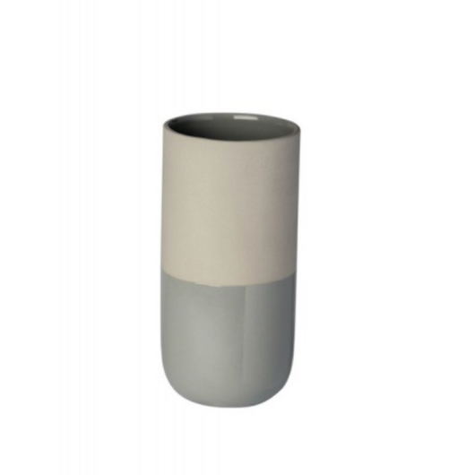 A stunning and subtle stoneware vase from Räder. What beautiful colours and such an elegant yet slightly robust design. This vase is crafted from matte grey stoneware and finished with a dark grey glaze on the inside and partially on the outside, making it suitable for holding water. Your flowers will look absolutely radiant in this lovely vase.
