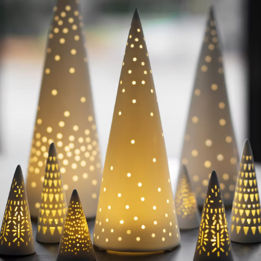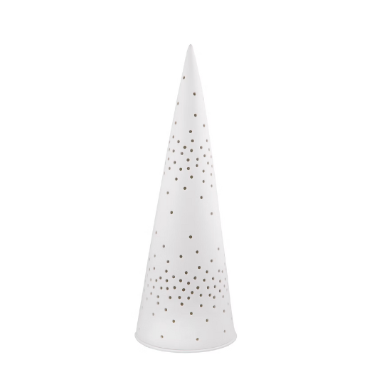 A Christmas tree is a timeless symbol of the season — and this elegant porcelain version brings a modern, luminous twist to a beloved classic. Crafted from white matte porcelain, its delicate openwork design lets the LED light shine softly through, casting gentle reflections across your walls.