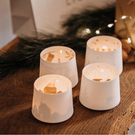 Räder’s Shadow Play tealight holder is designed to captivate at first glance. Crafted from white porcelain, its interior reveals a delicate snowscape that comes alive in the glow of candlelight. Whether placed at the heart of your tablescape or on a bedside table, this enchanting piece casts a warm, festive ambience — so striking in its design, a tealight is almost optional. Available in four designs.