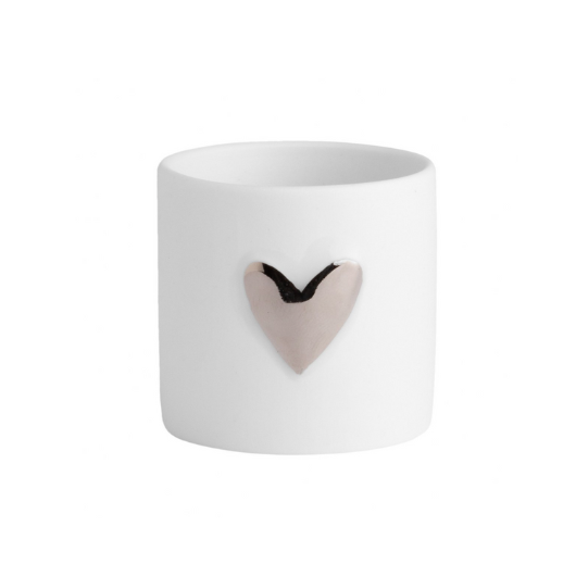 Rader Tea Light Holder In Porcelain With Silver Heart Decal Set Of 2pcs