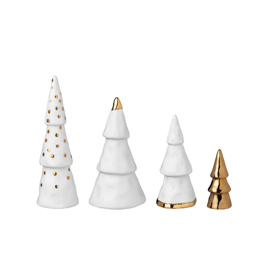 Rader Winter Forest Porcelain Fir Trees – Set of 4 are the perfect accessory to your village or can be used alone or with other trees to create stunning centerpieces or shelf decor. The beautiful white porcelain, which gives the impression of snow, with stylish gold accents add an amazing bit of winter your landscape. Trees are charmingly delicate. Dimensions: gold 1.2×1.2×2.8in / 3x3x7cm; gold base 2x2x4.5in / 5x5x11.5cm; gold tip 2.8×2.8×5.1in / 7x7x13cm; gold dots 2.2×2.2×6.1in / 5.5×5.5×15.5cm. Materials: porcelain….