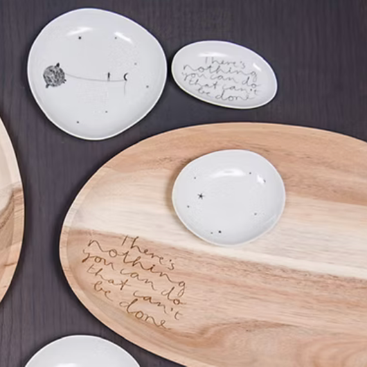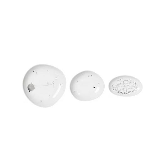 Add charm and elegance to your home with the Räder Wonderland Set of Three Silver Trinket Bowls. Crafted from delicate white porcelain, each hand-finished bowl is glazed and adorned with thoughtful silver illustrations inspired by the themes of giving, carrying, and growing. These enchanting dishes are perfect for storing jewellery, small treasures, or for adding a decorative touch to any space.