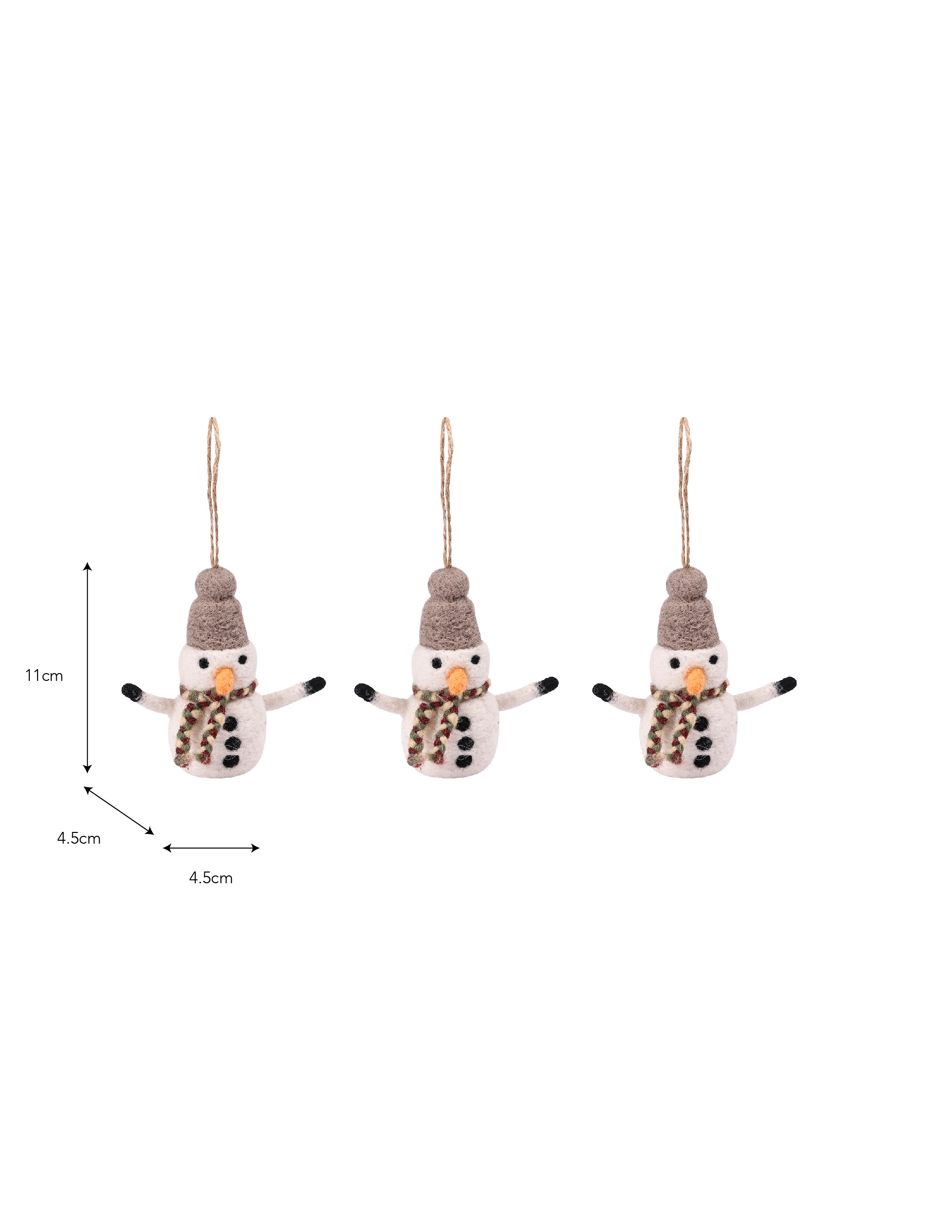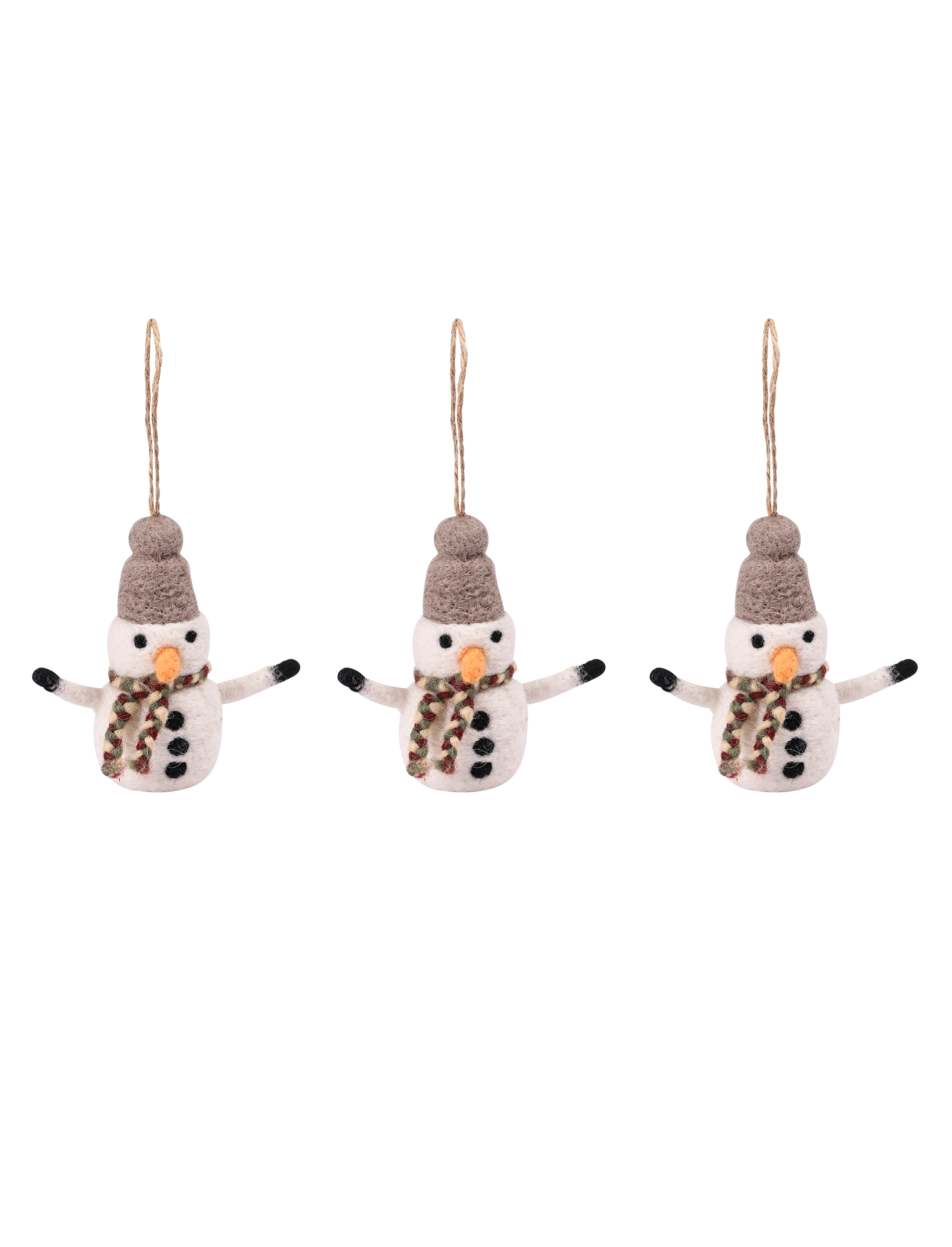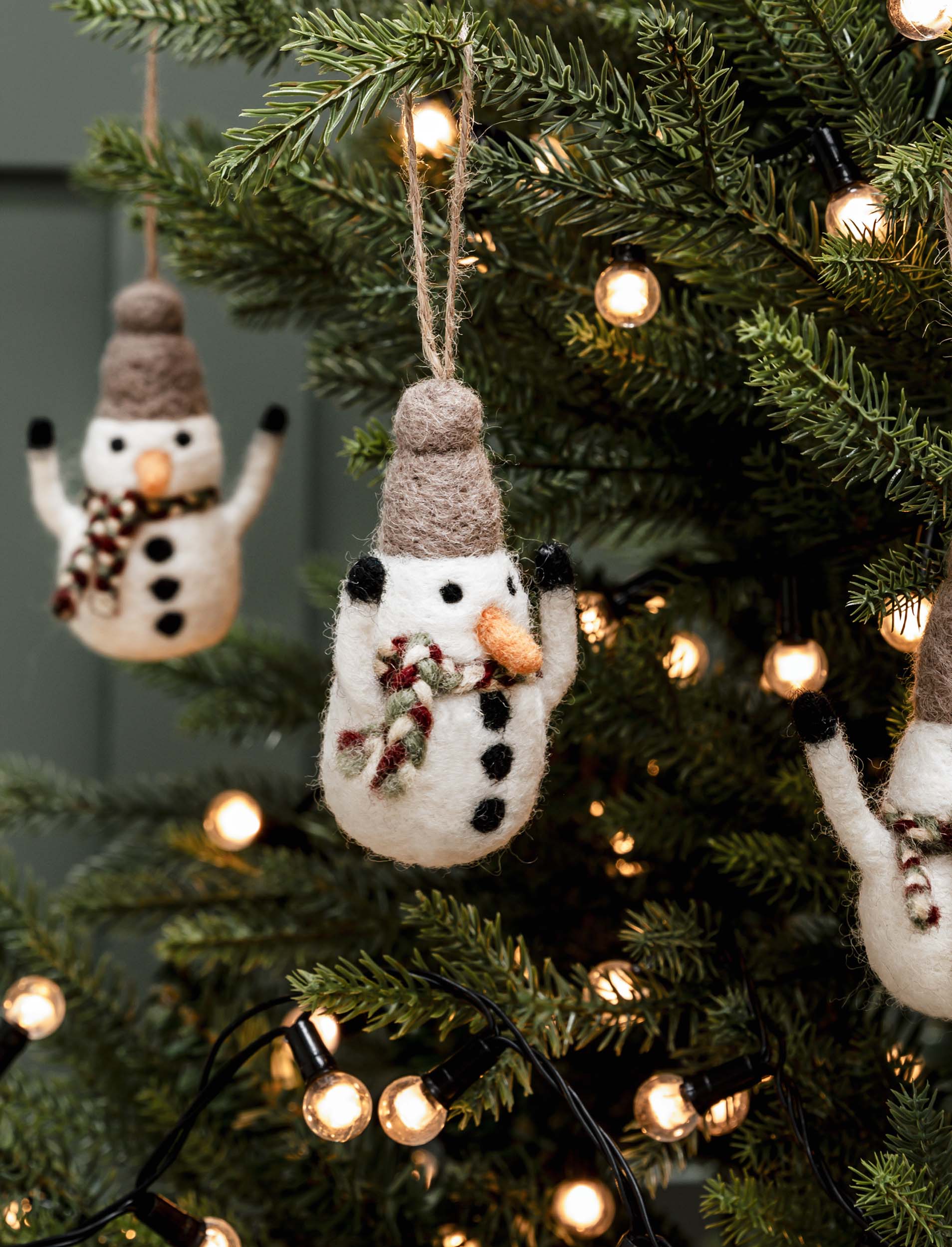 Add a touch of rustic charm to your Christmas décor with this trio of Southwold Christmas Snowmen. Hand-felted with care, each snowman features delightful details—tiny hats, scarves, carrot noses, and coal buttons—that bring them to life. Perfect for hanging on your tree, they also look wonderful on door handles or cupboard knobs, spreading festive cheer throughout your home. Complete the look by exploring other hand-felted decorations from the Southwold collection.