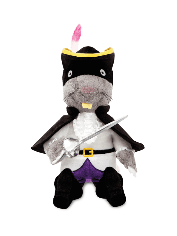 This adorable soft toy is based on the children’s book The Highway Rat by Julia Donaldson and Axel Scheffler. The Highway Rat plush has all the features of the illustration character including a feathered cavalier hat, cape and movable sword!