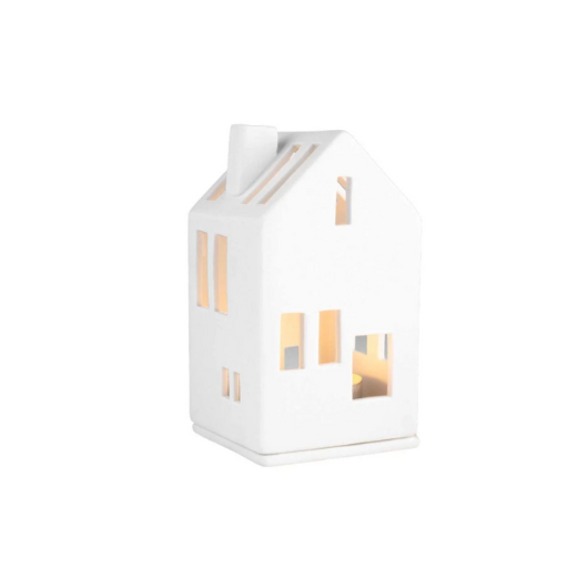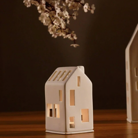 Bring a warm, inviting glow to your home with The Residence Tealight Holder and Sculpture. Crafted from white porcelain, this charming lighthouse design radiates a soft, golden light when a tealight is placed inside. The gentle illumination filters through its delicate windows, roof, and door cut-outs, creating a cosy ambience in any room.