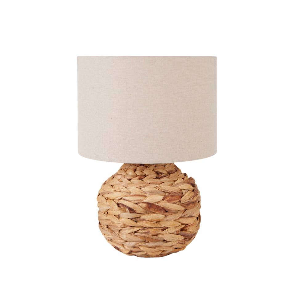 This effortlessly stylish round lamp base is lovingly crafted from water hyacinth in a beautiful plaited design. The well-proportioned table lamp is finished with a natural self-lined shade that would look fabulous in a scandi or coastal interior to add a soft, organic texture.